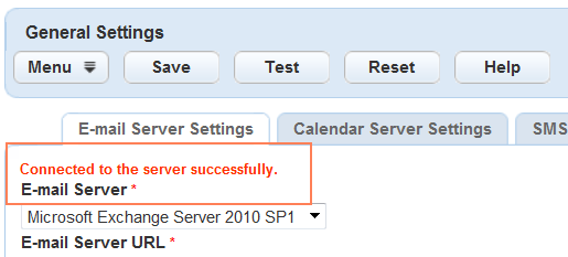 - If you receive a message indicating that Civic Platform failed to connect to your Exchange Server, revise your entries and test again until you receive a success message.