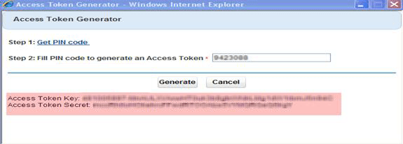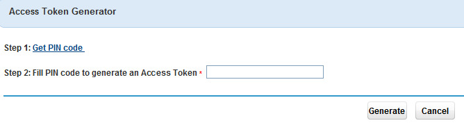Enter the PIN code in the Access Token Generator page, and then click Generate.