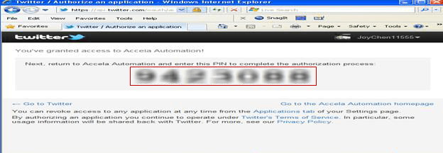 Twitter provides the PIN code.