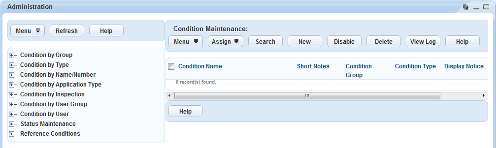 Civic Platform associates condition groups with record types and makes all conditions in the condition group available to the associated record type. Condition groups consist of condition types and individual conditions of a particular condition type.