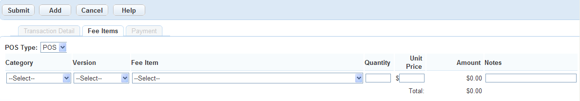 Your agency might have a fee that it does not with a record. For example, you might want to sell a map of the county, copies of records, or souvenir shirts. You can create a point of sale transaction to receive these types of payments.